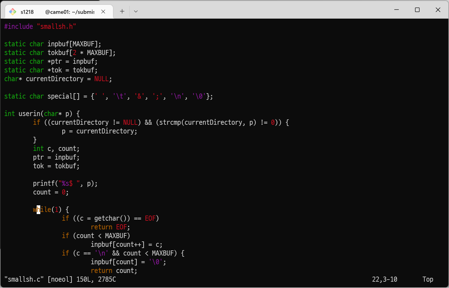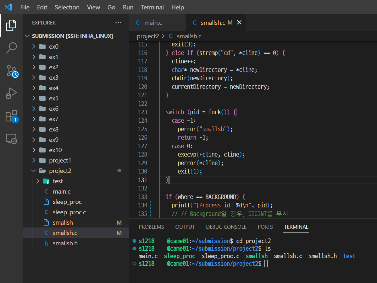 VSCode 환경에서 서버에 연결한 덕분에, 터미널과 vim을 동시에 띄워 코드를 보면서 프로그램을 실행할 수 있었다.