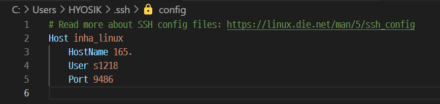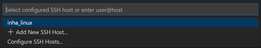 방금 전 Config 파일에서 입력했던 Host가 나타나는 것을 확인할 수 있었고, 'inha_linux'를 선택했다.